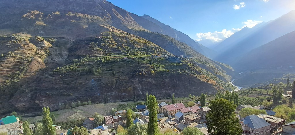 The homestay we booked at Keylong was deep in the valley, offering a unique perspective of the surrounding beauty, but it lacked parking, and we had luggage. So we were drawn to another simple homestay on the roadside that boasted a breathtaking view. Named after the Lahaul mountain peak, Drilbury, it featured a balcony overlooking the entire valley with the Bhaga River meandering through. The homestay, though basic, provided a million-dollar view from its terrace. The rooms were clean, cosy, and comfortable, and the owner, Manu, was a gracious host, making us feel completely at ease.