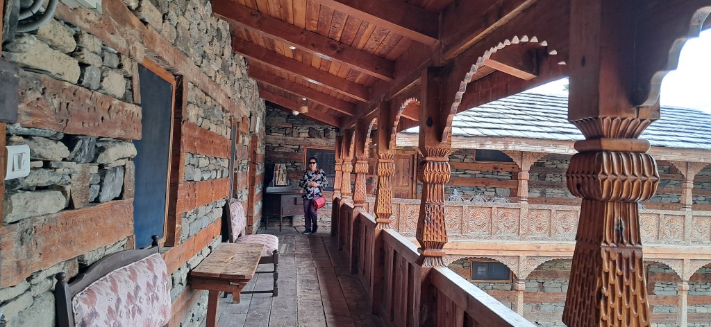 I revisited Naggar Castle. Although the incredible view of Bias Valley from the castle hasn’t changed, the place offers accommodation services that restrict visitors from entering the several rooms we saw before. The weeping willow in the courtyard’s centre, which we liked so much last time, has been removed. Puzzled and curious about what happened to it, I stopped a lady officer to ask.