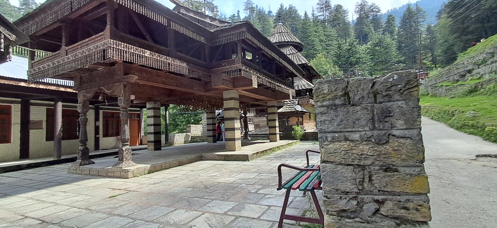 The Tripura Sundari Temple, a marvel of ancient architecture, stands tall as evidence of its builders’ craftsmanship. Its unique construction, entirely of Himalayan cedar wood, boasting a triple-layered roof and a conical shikhara, piques curiosity. I was eager to explore. The last time we visited Naggar, we missed the temple because of time constraints. We only saw it from the top of the road, but its unique features left us eager to delve deeper into its beauty.