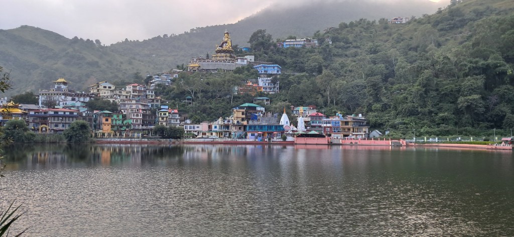 Visiting and staying in Rewalsar was a last-minute suggestion from Manu, our Keylong Guest House owner. The road to Rewalsar after Mandi is very scenic. As we went up the winding way, fresh wind and mild weather greeted us. It was smooth to watch the surrounding pine trees, creating a panoramic view of the valley. Rewalsar, a key religious place for Hindus, Sikhs and Buddhists, is a jewel of tranquillity. The Lake, woodland, and high hills present a variety of natural beauty, characterised by the Lake’s tranquil waters, the cool mountain breeze, and the serene environment that captivated us. Adding to its mystic appeal, the Lake is fed by underground springs and roughly square in shape. Surrounding the Lake are soaring hills, some rising sharply, providing panoramic views of the valley below.